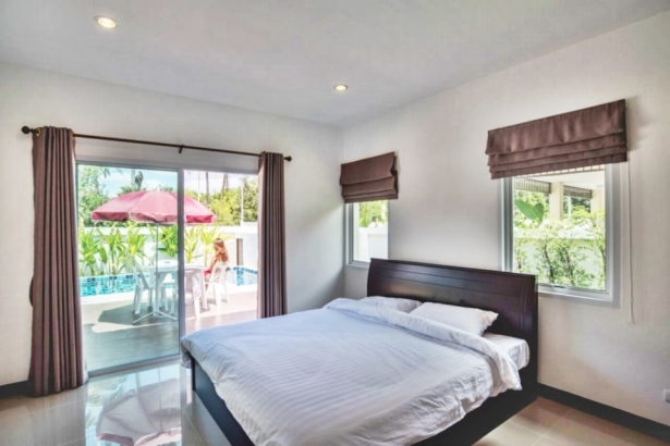 บ้านดอกแก้ว หัวหิน พูลวิลล่า บ้านพักมี 2 ห้องนอน 2 ห้องน้ำ มีเตียง 6 ฟุต ห้องละ 1 เตียง ที่นอนเสริม 2 ชุด รองรับลูกค้าได้ 8 ท่าน เสริมได้อีก 2 ท่าน ตั้งอยู่หัวหินซอย 70 พร้อมสระว่ายน้ำส่วนตัว บรรยากาศร่มรื่น ติดเครื่องปรับอากาศทั้งหลัง มีอุปกรณ์ทำครัวครบ สามารถประกอบอาหารได้ และ มีเตาปิ้งย่าง บ้านพักใกล้ตลาดโต้รุ่ง , เพลินวาน บ้านพักห่างจากทะเล ขับรถไปทะเล 10-15 นาที สิ่งอำนวยความสะดวกครบครัน