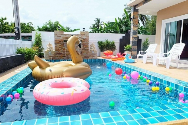 บ้านบูริน หัวหิน พูลวิลล่า บ้านพักมีขนาด 2 ห้องนอน 2 ห้องน้ำ ขนาดเตียง 6 ฟุต 2 เตียง รองรับลูกค้า 10 ท่าน เสริมได้อีก 3 ท่าน ตั้งอยู่หัวหินซอย 70 บ้านพักหลังใหม่ สไตล์โมเดิร์น พร้อมสระว่ายน้ำส่วนตัว พร้อมห่วงยางแฟนซี มีบริการคาราโอะเกะ ไฟเธค และโต๊ะสนุ๊ก สามารถจัดปาร์ตี้สังสรรค์บริเวณหน้าบ้านได้ และสามารถทำอาหารได้ มีอุปกรณ์ครัวครบ มีเตาปิ้งย่าง ติดตั้งเครื่องปรับอากาศทั้งหลัง บริการฟรี อินเตอร์เน็ตแบบ Wi-Fi บรรยากาศร่มรื่น สิ่งอำนวยความสะดวกครบครัน ห่างจากทะเล ขับรถไปประมาณ 10-15 นาที