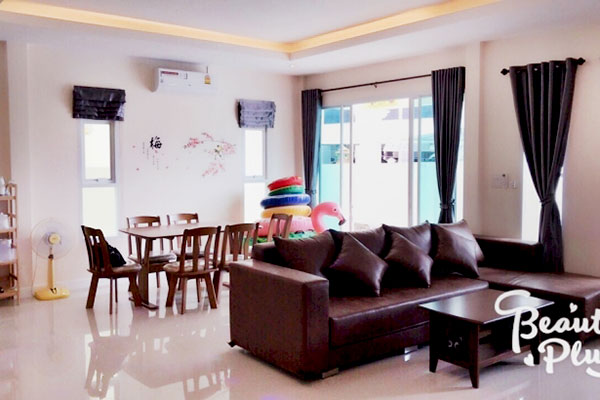 บ้านลูกหว้า หัวหิน พูลวิลล่า บ้านพักมี 3 ห้องนอน 2 ห้องน้ำ เตียง 6 ฟุต จำนวน 3 เตียง และโซฟาเบด สำหรับ 4 ท่าน รองรับได้ 10 ท่าน เสริมได้ 2 ท่าน ตั้งอยู่หัวหินซอย 88 มีสระว่ายน้ำส่วนตัว ฟรีห่วงยางแฟนซี พร้อมโต๊ะนั่งเล่นริมสระอีกด้วย สำหรับคนที่ชอบร้องเพลง ทางเราก้ยังมีคาราโอเกะ ไฟเธค ไว้ให้จัดเต็มอีกด้วย สามารถจัดปาร์ตี้กันได้อย่างสนุกสนาน และทางบ้านพักของเรายังมีอุปกรณ์ครัวครบครัน พร้อมเตาปิ้งย่าง สามารถทำอาหารได้อย่างเต็มที่กันเลยทีเดียว เหมาะสำหรับการมาพักผ่อนในวันหยุดสุดๆ