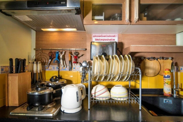 - อุปกรณ์เครื่องครัวบริการฟรี (ต้องล้างให้ด้วย ไม่สะดวกล้างเองคิดค่าบริการ 500 บาท)