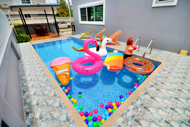 บ้านโอบดาว หัวหิน พูลวิลล่า บ้านพักขนาด 3 ห้องนอน 3 ห้องน้ำ ขนาดเตียง 6 ฟุต 1 เตียง ,เตียง 5 ฟุต 2 เตียง และที่นอนเสริมห้องละ 1 ชุด รองรับได้ 10 ท่าน เสริมได้ 2 ท่าน มีสระว่ายน้ำส่วนตัว มีเตียงนอนริมสระไว้สำหรับนอนพักผ่อนได้อีกด้วย บ้านพักบรรยากาศดี มีคาราโอเกะ ไฟเธค สามารถจัดปาร์ตี้ได้ มีบริการโต๊ะสนุ๊ก เพิ่มความสนุกสนานอีกด้วย สามารถมาพักผ่อนกับครอบครัว หรือกลุ่มเพื่อนก็ได้ บ้านพักของทางเรายังมีอุปกรณ์ครัวครบครัน สามารถทำอาหารได้ มีเตาปิ้งย่างให้ สิ่งอำนวยความสะดวกครบครัน เหมาะสำหรับการมาพักผ่อนในวันหยุดสุดๆ และยังสามารถนำสุนัขเข้าพักได้ ตรงข้ามมี 7-11 และ Family Mart อีกด้วย